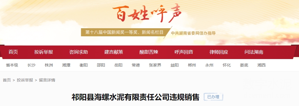 近日,湖南省祁阳市自然资源局回复民众举报的举报“祁阳县海螺水泥有限责任公司存在违规销售水泥用灰岩、扰乱市场的行为”,详情如下:
